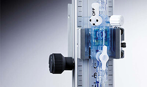 The extent to which innovation can yield new practical advantages becomes apparent in the height adjustment to the foramen of Monro level – with a laser pointer that ensures quick and precise performance. And to further improve the ergonomic and economic qualities, an adaptor lets you flexibly integrate a pressure transducer into the support system. Speaking of flexibility: the modular, long-lasting support system can be mounted onto almost any intensive care bed. Any CSF drainage needs reliable constants, such as maximum ICP, zero point of the transducer and determination of the foramen of Monro position. The VentrEX® EVD-Stand stationary support system safely mounts external ventricular drainage systems and keeps all initial adjustments constant – even when the headrest is adjusted. No need for complicated re-adjustment – a great relief especially for intensive care units.