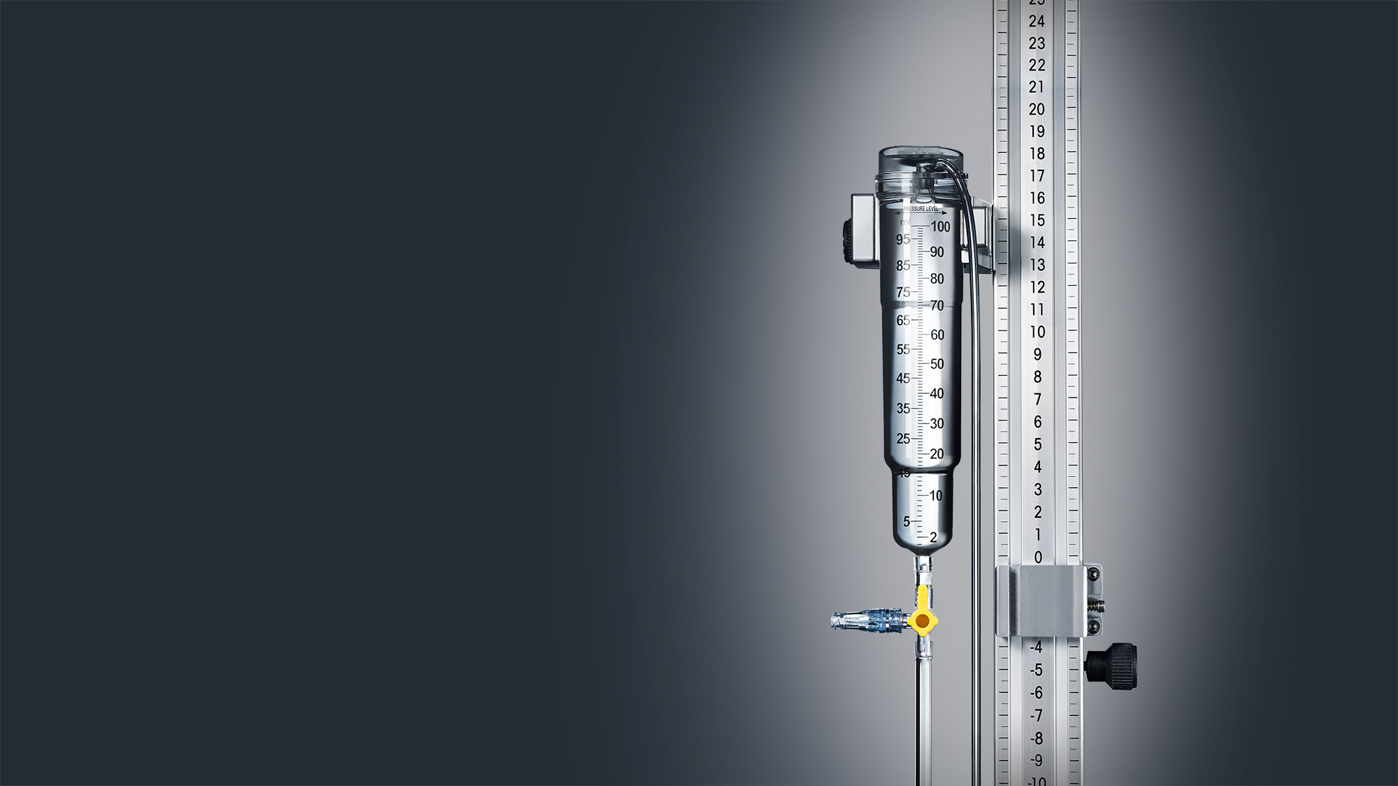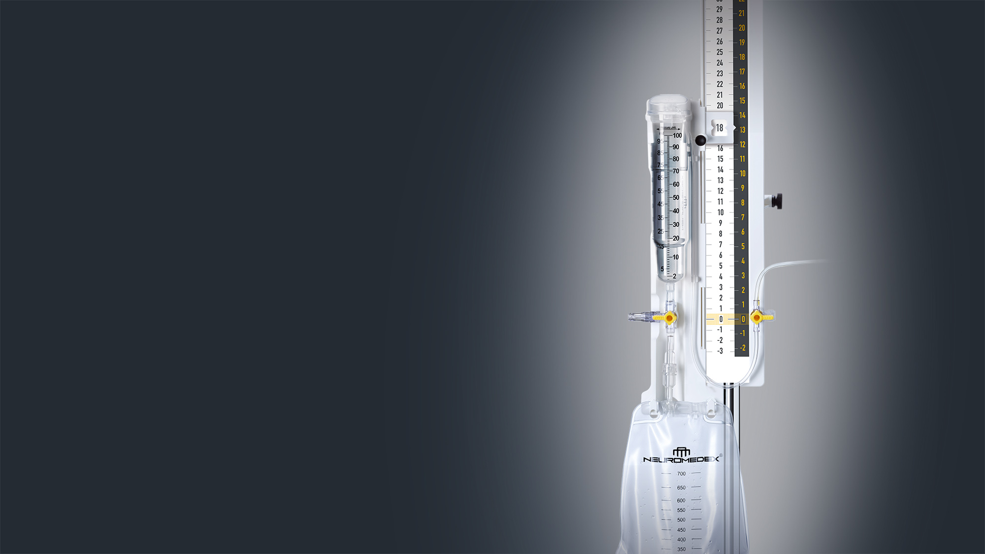 Consisting of the VentrEX® EVD-System and a disposable stand, VentrEX® Complete is the perfect solution for ventricular or lumbar drainage. Its wide range of smart features, clearly arranged components and easy-to-read scale guarantees intuitive handling at maximum safety.